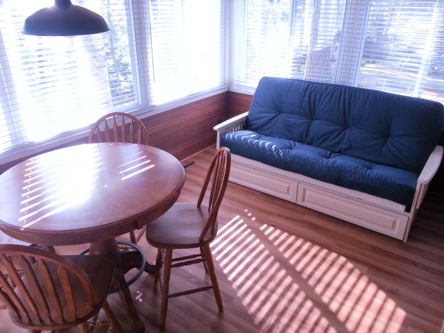 bedrooms, a futon in the living room, and 2 1/2 bathrooms,